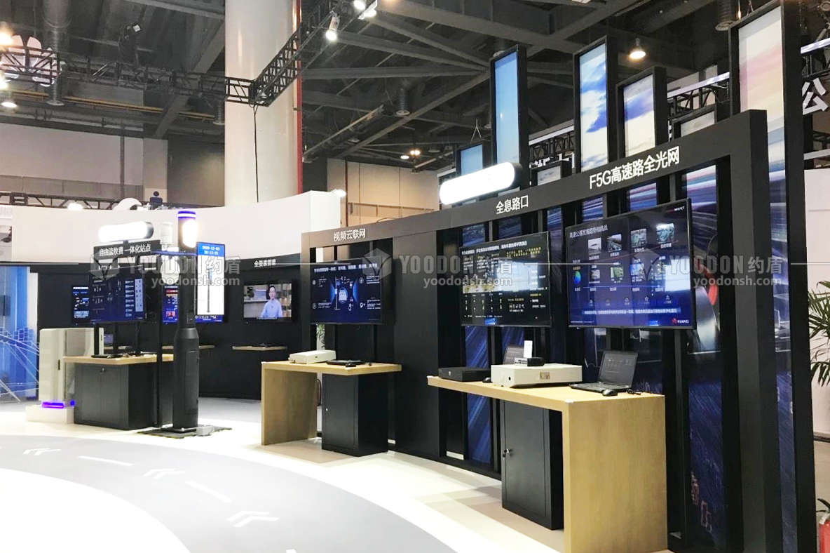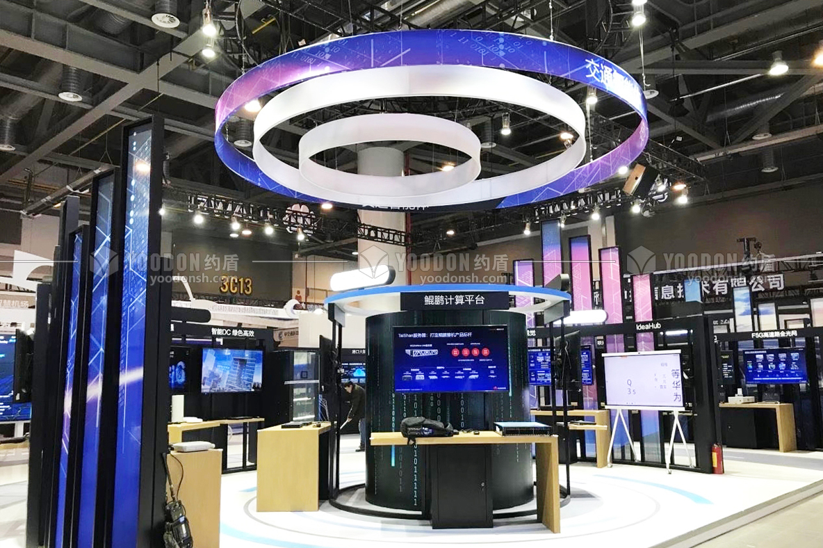 華為展臺搭建設計的風格高科技高智能,引領時代的潮流。